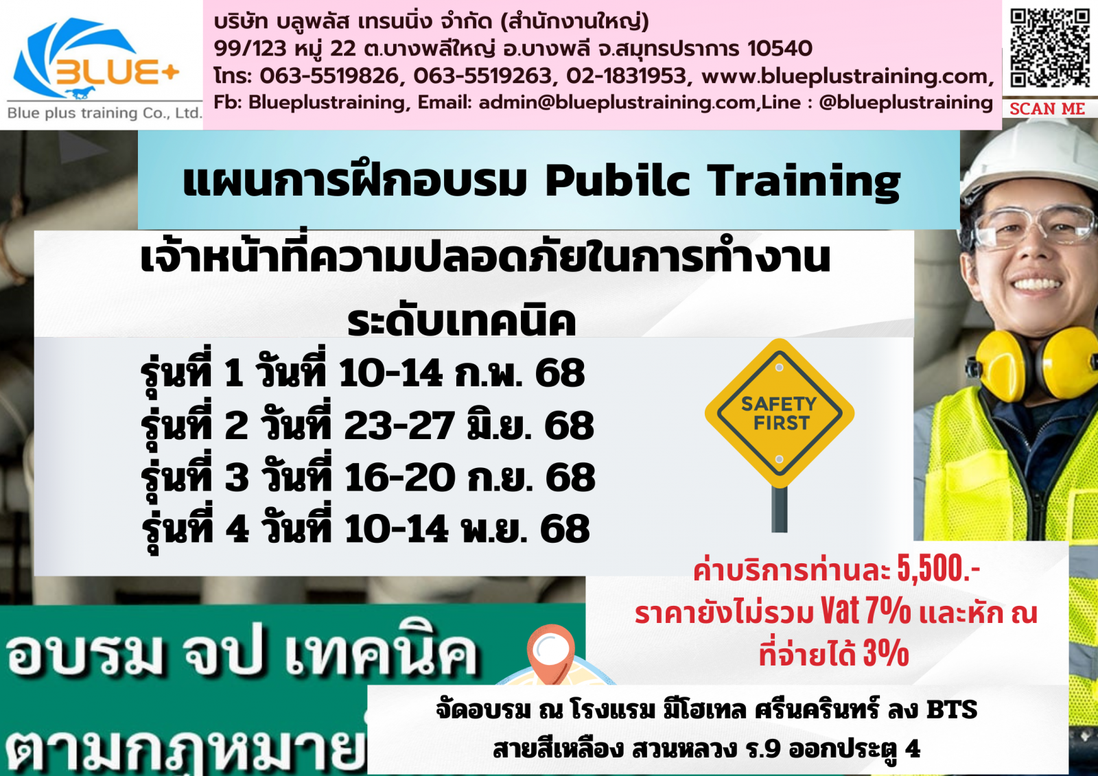 Public training เจ้าหน้าที่ความปลอดภัยระดับหัวหน้างาน ระดับบริหาร ระดับเทคนิค และ คปอ ราคาพิเศษเริ่มต้นที่ ท่านละ 2,200 บาท
